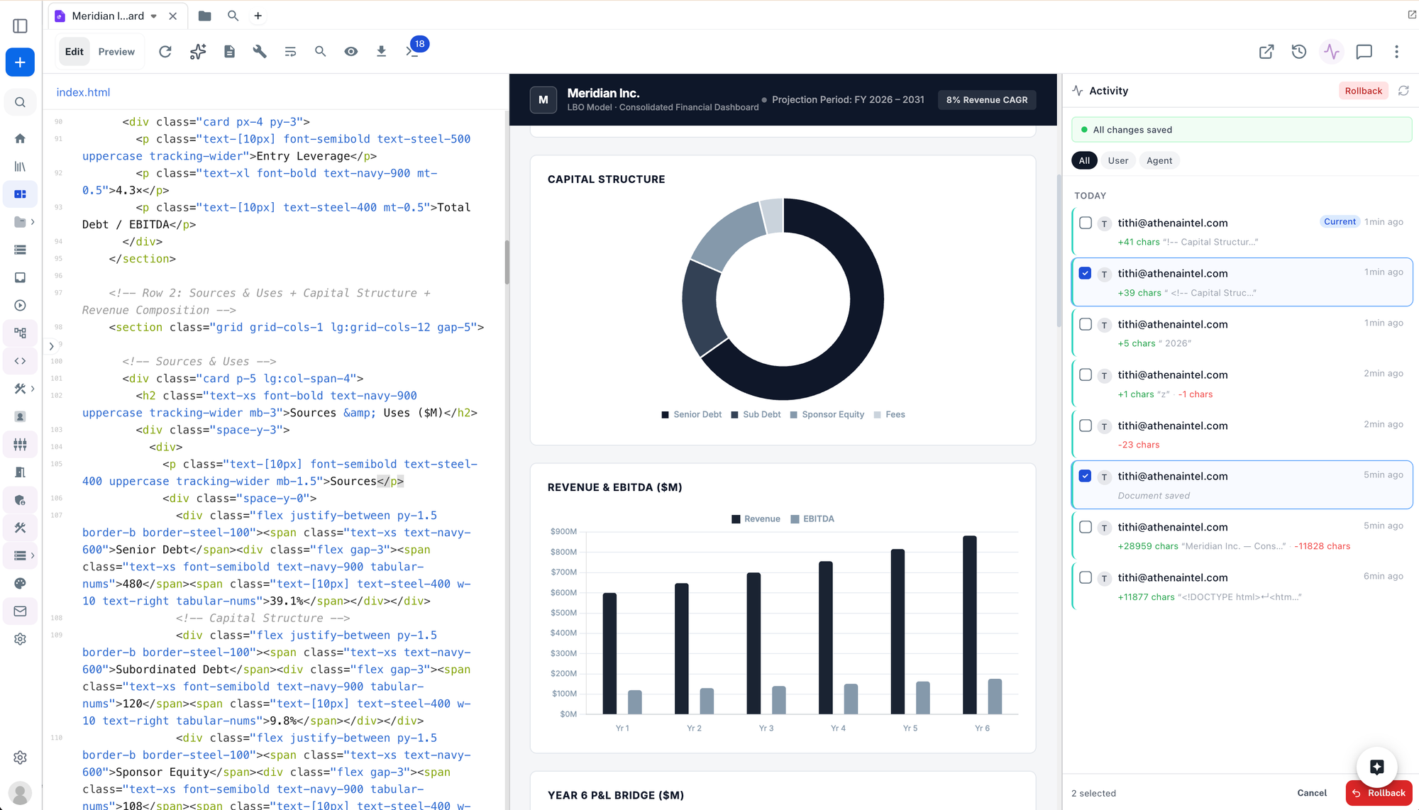 Rollback is all-or-nothing. If an agent introduced a problematic edit to a financial model three days ago, the only option in most systems is to revert the entire asset to a state before that edit — losing every subsequent change from every other contributor. In environments where multiple agents and analysts are collaborating on deeply technical work — due diligence reviews, compliance documentation, earnings analysis — that's not a viable option.