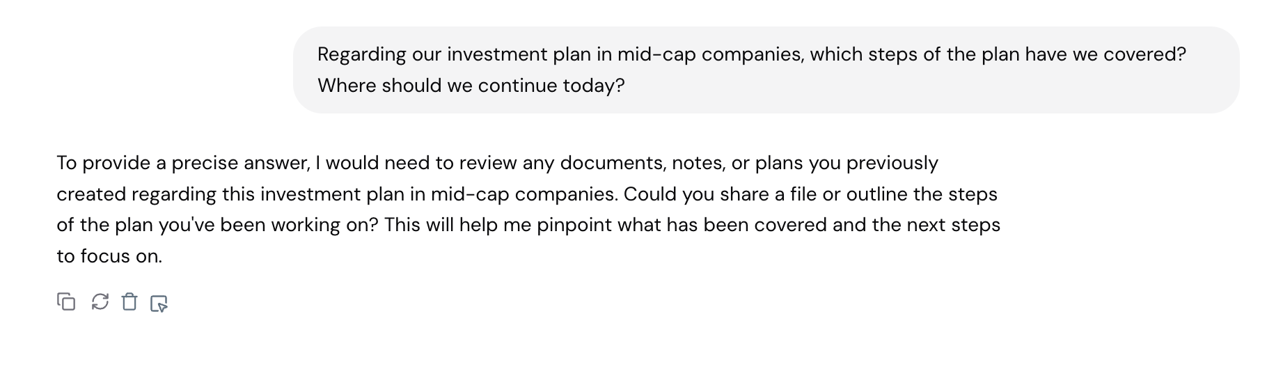 For long-term projects or complex tasks, the absence of memory created continuity problems. Athena couldn't recall previous stages of a project, past decisions, or contextual information that would be essential for providing consistent support. When faced with similar problems she had encountered before, she couldn't reference previous solutions or approaches, leading to inefficient problem-solving.
